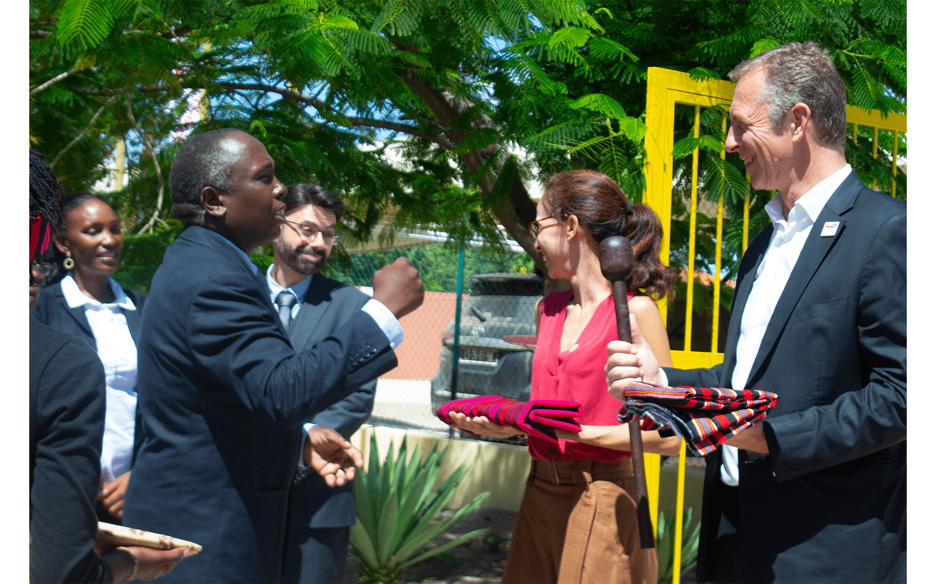 Direcção da TotalEnergies, Coordenador Nacional da Rede Eiffel, Director do Liceu Eiffel de Ondjiva durante a visita ao Liceu Eiffel de Ondjiva