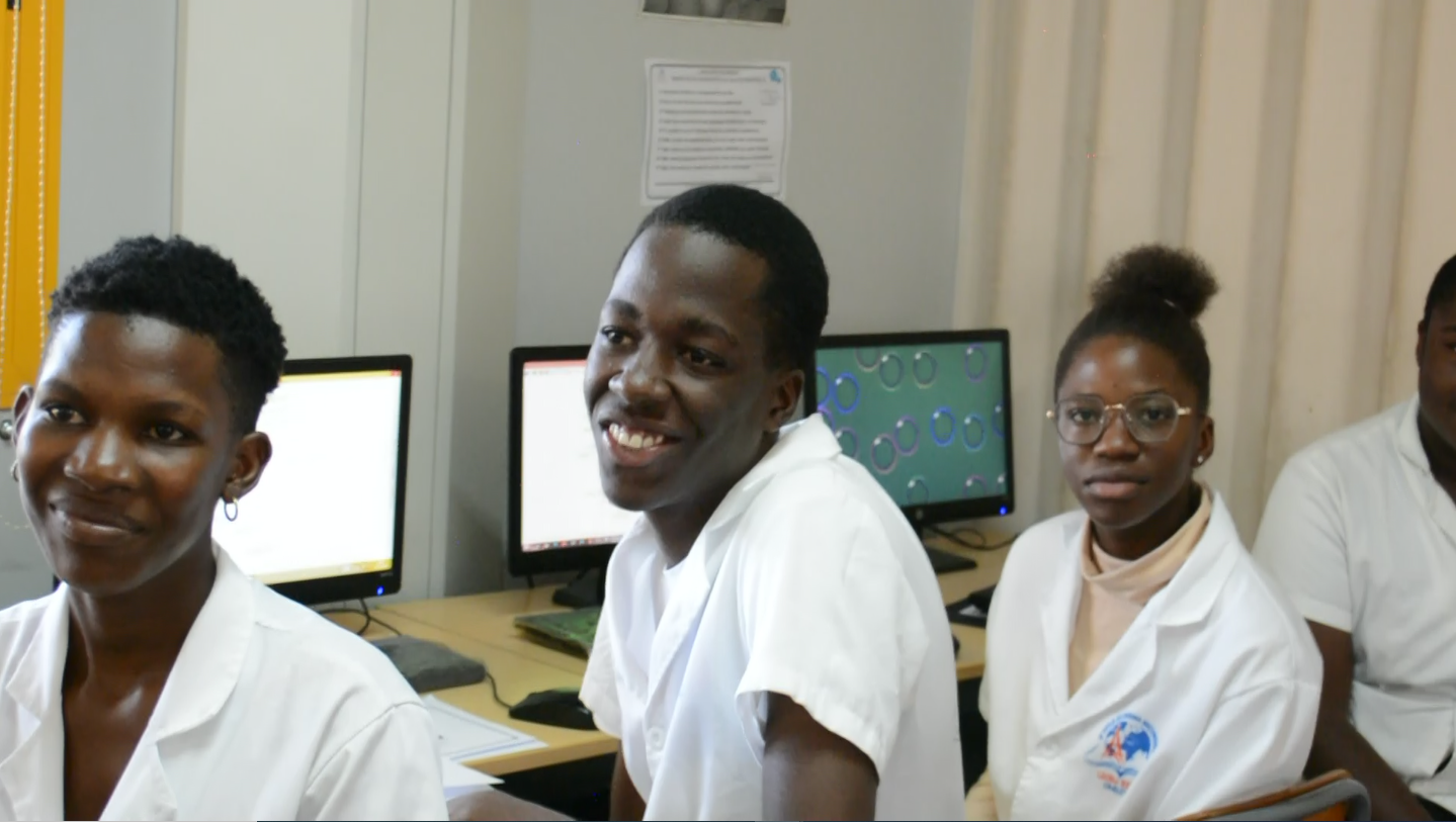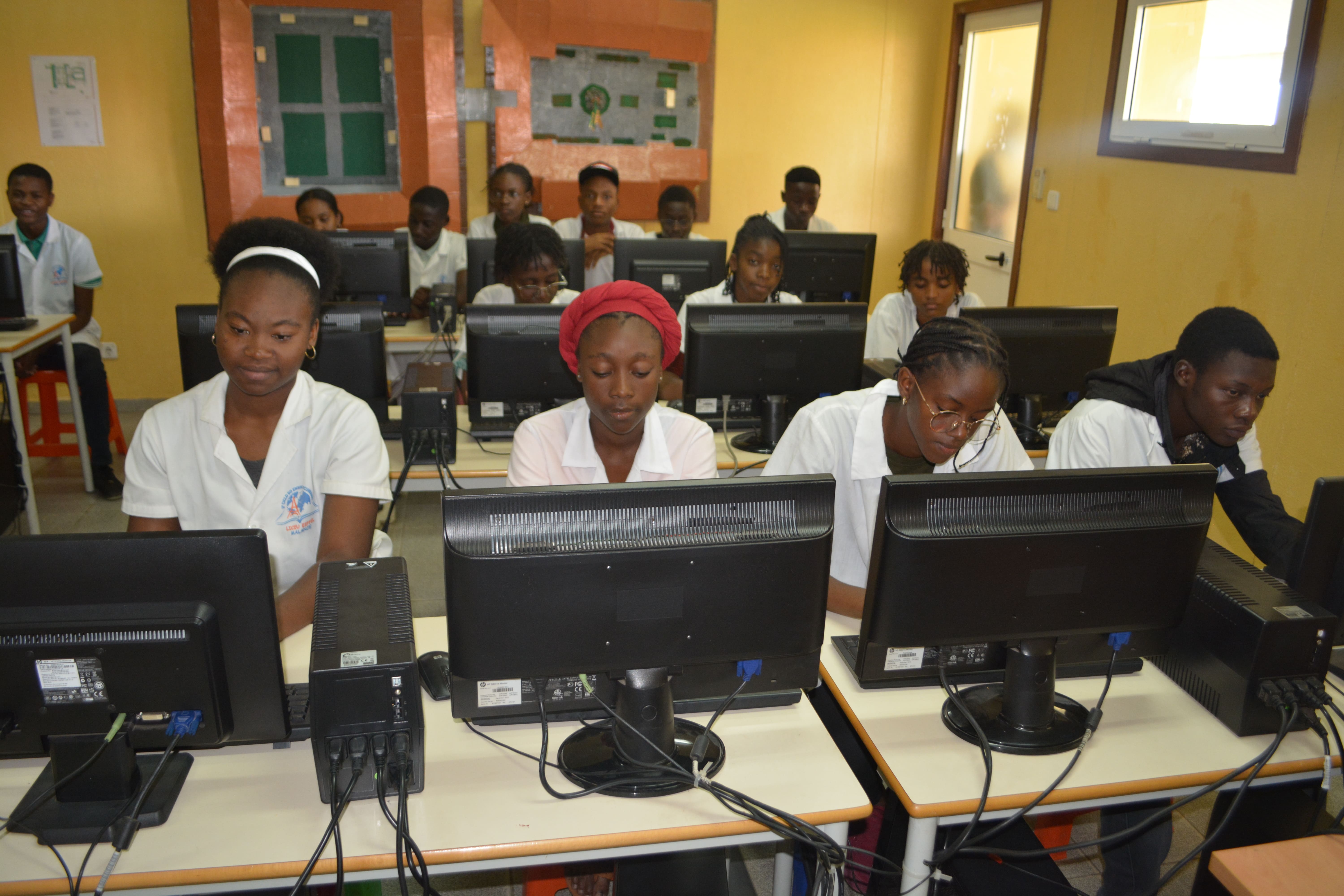 Estudantes do Liceu Nº 30 Eiffel de Cazengo fazendo práticas de informática